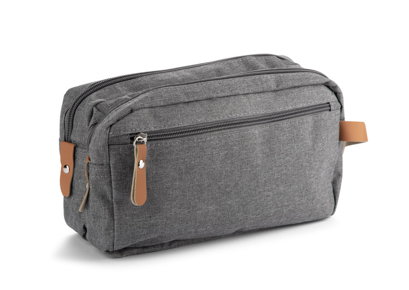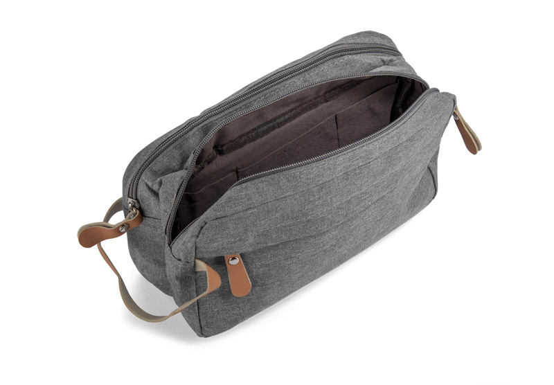 Wyróżnia ją przede wszystkim melanżowy szary kolor i unikalne wykończenia z ekologicznej skóry w brązowym odcieniu, które dodają elegancji. Dwukomorowa struktura z licznych przegródek zapinanych na suwak pozwala na uporządkowane przechowywanie zarówno dużych, jak i małych przedmiotów. Kosmetyczka NASLI jest nie tylko praktyczna, ale również łatwa w utrzymaniu czystości, co czyni ją doskonałym wyborem na każdą podróż.
